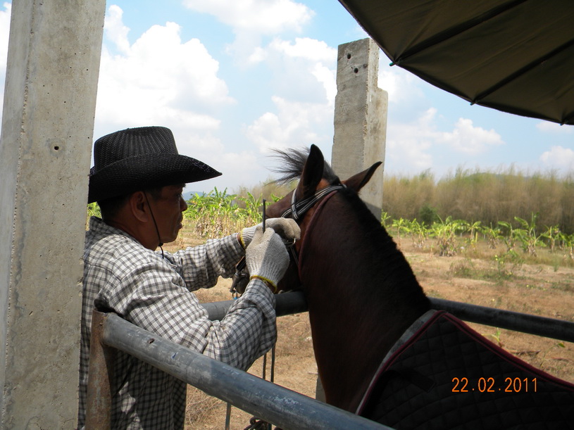 แล้วก็ใส่ตะพายบังคับม้าเลี้ยวซ้าย-ขวาหรือหยุดก็ได้นี่แหละครับ...แต่ถ้าดึงแล้วไม่หยุดน้าแป๊ะบอกให้โดดทันที(จะได้ไม่ต้องไปหิ้วปีกไกล)ฮิฮิ