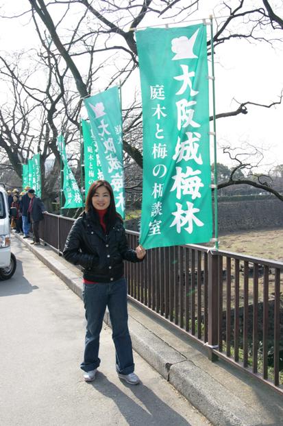 ป้ายสีเขียวบอกประมาณว่าเป็นเทศกาลชมดอกซากุระบาน...