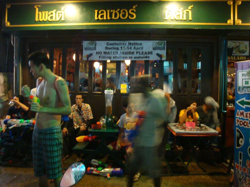ที่เห็นคือนอกร้าน เราจะนั่งรอ ลูกหลานเล่นสงกรานต์นอกร้าน หรือในร้านก็ได้ มีวงดนตรี ชั่วโมงละวง....