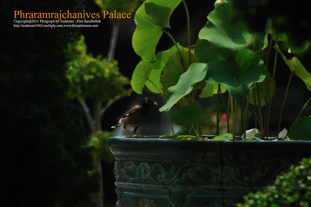 นกเอี้ยงสาริกา บินมาเกาะกินน้ำในอ่างบัว...