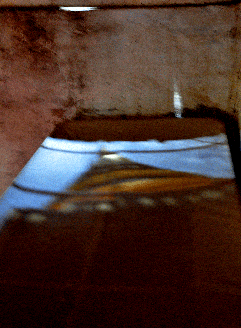 ลองเอากล้องเข้าแนบกับรูที่แสงเข้าดูครับ