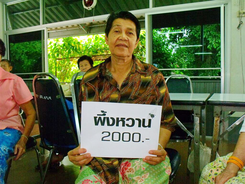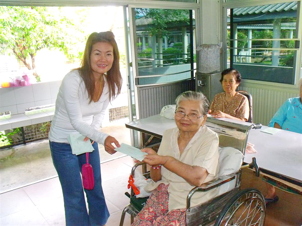 ป้าแอ๋ว(เจ้าสัวหญิง) นำเงินของผู้อนุโมทนาบุญ ใส่ซองละ 50 บาท แจกคุณยาย คนละซอง..