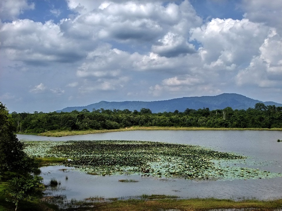 มองลงมาเห็นอ่างเก็บน้ำ..มีบัวอยู่เต็มเลย