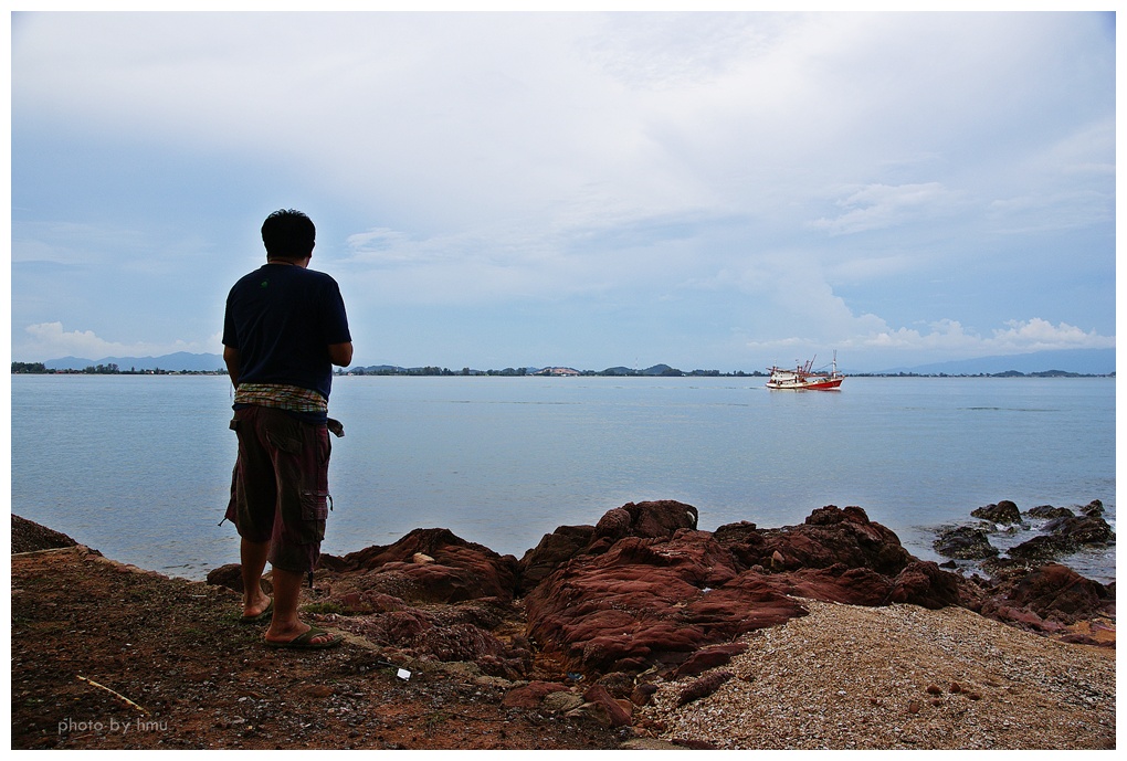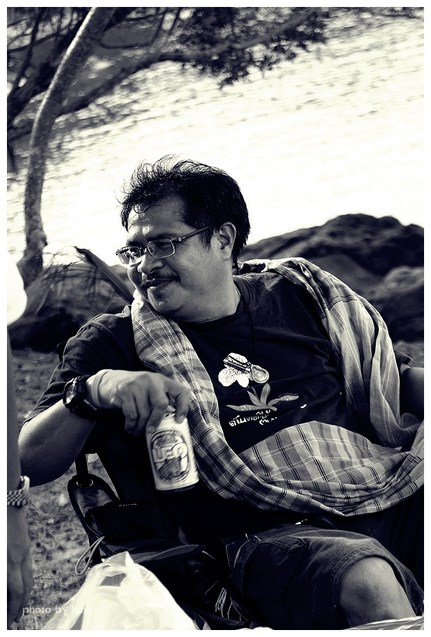 แอบถ่ายลุงนิดใจดีนั่งทอดอารมณ์สบายๆในแพข้ามฟาก กลับจากน้ำตกห้วยขมิ้น ที่เหลือนอกนั้นไปเที่ยวอาหลับกันหมด