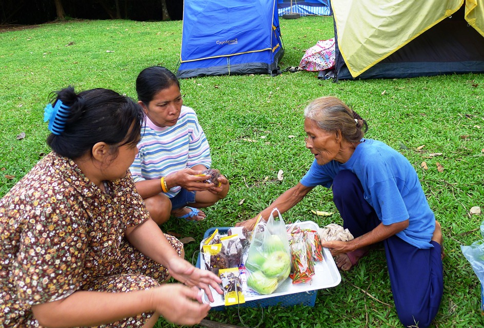 ป้าปุ๋ม...แม่หมีผู้แสนจะใจดีตื่นเช้ามาหน้าตายังไม่ได้ล้างซื้อของอุดหนุนคุณยายหน้าเต้นท์ที่น้ำตกห้วยขมิ้น กาญจนบุรี