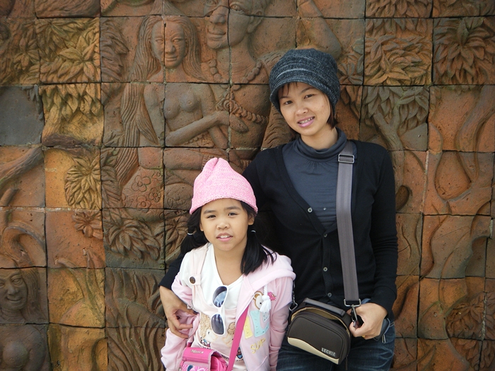 แม่ลูกกำลังมีความสุขกับบรรยาการที่เย็นสบาย..
