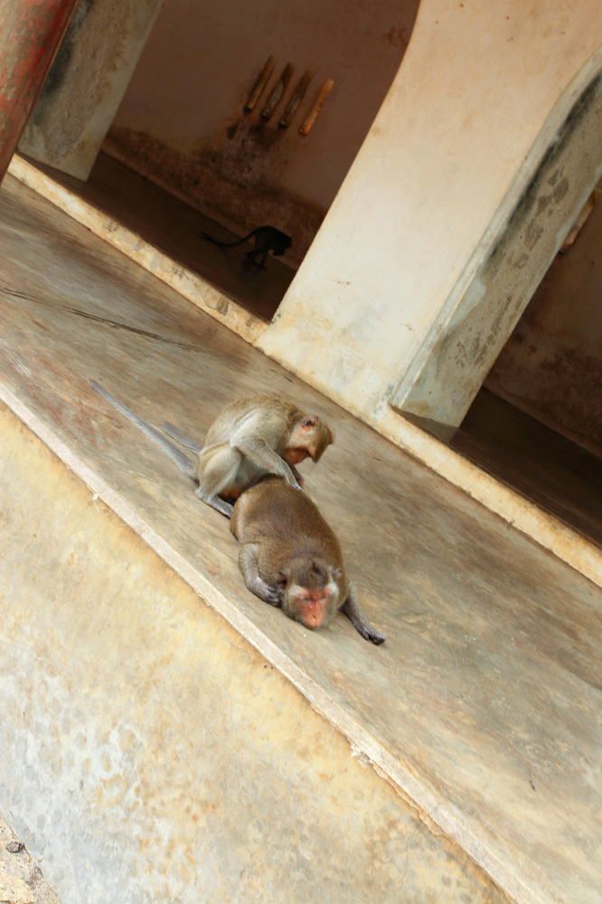 ระหว่างทางเดินเราจะเห็นลิงอยู่สองข้างทาง และบนต้นไม้ด้วยครับ ระวังตัวด้วยครับ ห้ามถือของกิน ห้ามจ้องหน้ามัน ห้ามเข้าไปไก้ลๆเพื่อถ่ายรูปมัน วันนี่คนน้อยไม่มีคนซื้ออาหารให้มันทาน ลิงมันก็หิวก็เลยก้าวร้าวเป็นพิเศษครับ