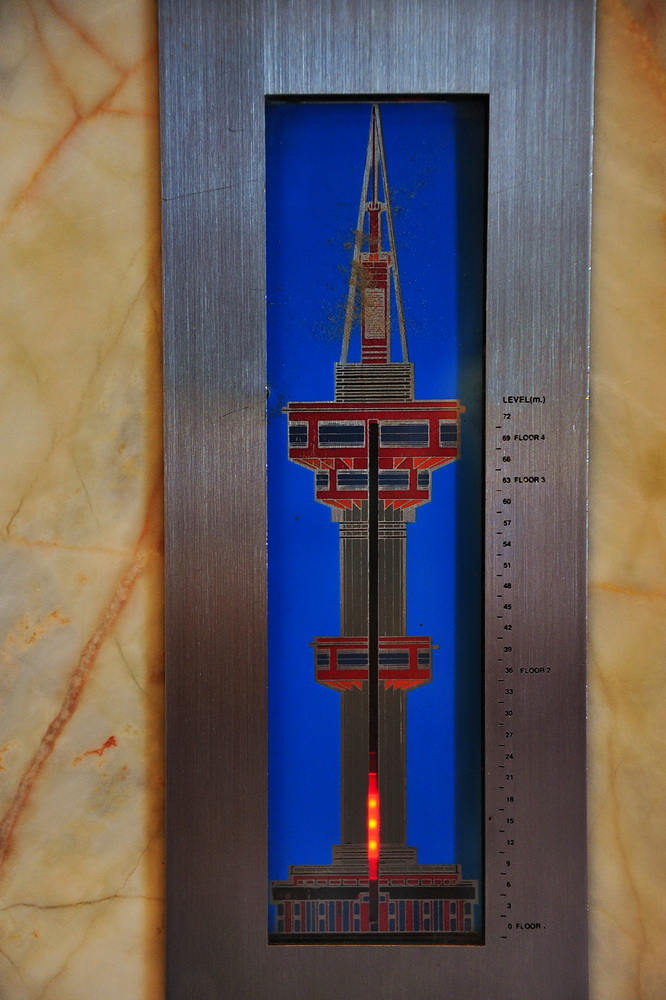 ขึ้นลิฟท์ไปชั้น 4 กันครับ (แต่ไม่ใช่ 4 ธรรมดานะครับ เพราะความสูงของหอคอยชั้น 4 มีถึงประมาณ 70 เมตร เท่ากับตึก 25 ชั้น)