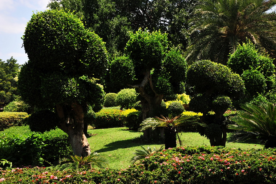 ไปกันต่อครับ พักร่มนิดหนึ่งใต้ซุ้มไม้อะไรไม่ทราบเหมือนกันครับ ดอกสีม่วงๆ
