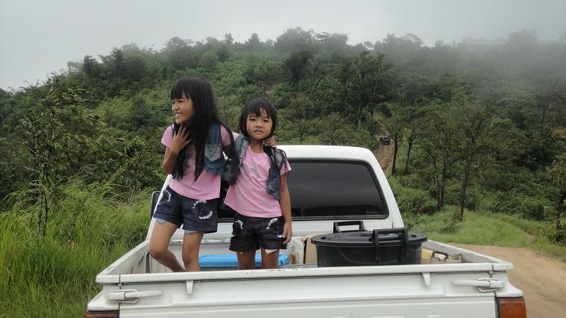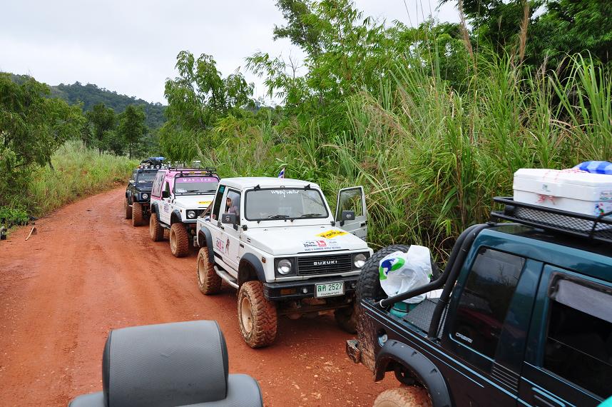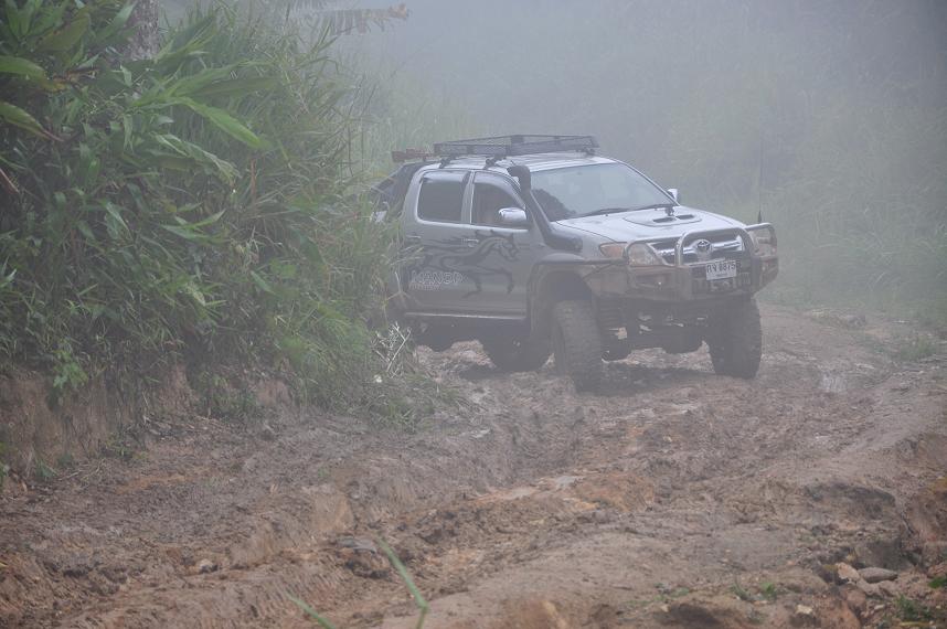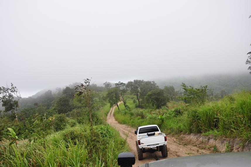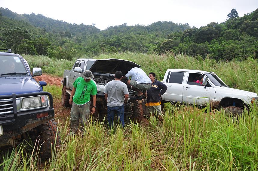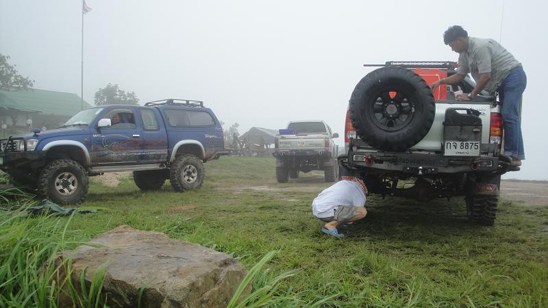 ลองสังเกตดูบนหลังคารถ ขวามือ จะมีรถ พี่ ๆ กลุ่มอื่น รถติดอยู่กลางเนินครับ