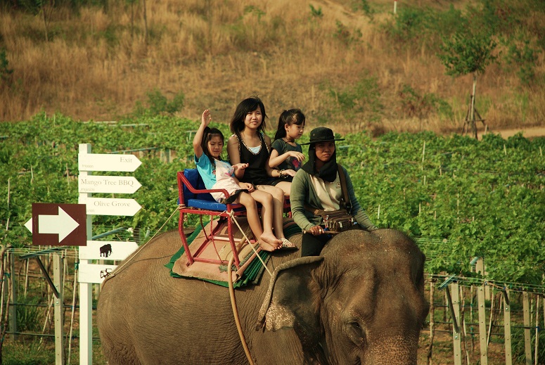 ....เด็กๆกับช้างในไร่องุ่น เที่ยวละ 300 บาท....
