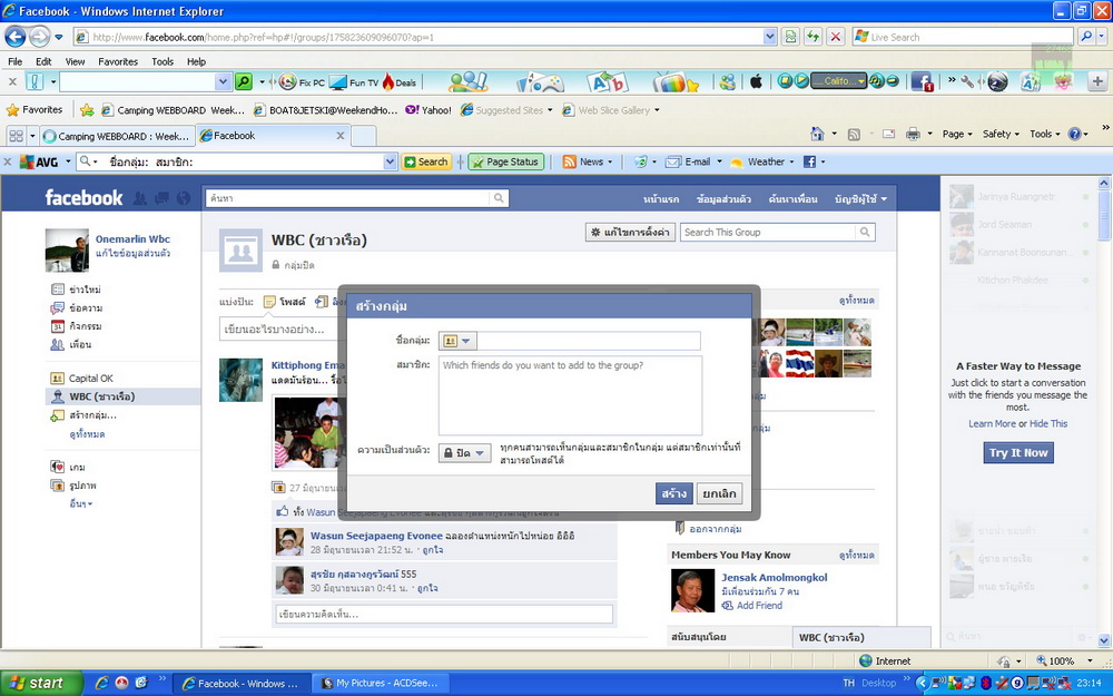 ในกลุ่มเรือเราก็สร้างกลุ่มไว้ใน FB เหมือนกันครับใช้ชื่อกลุ่มว่า WBC ครับ สร้างไม่ยากครับ