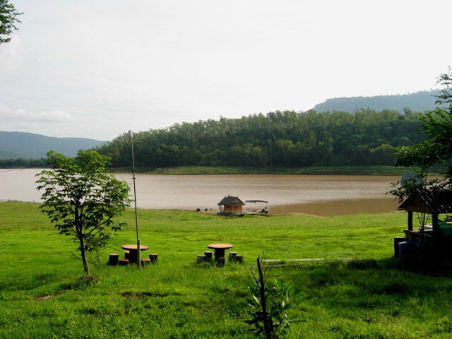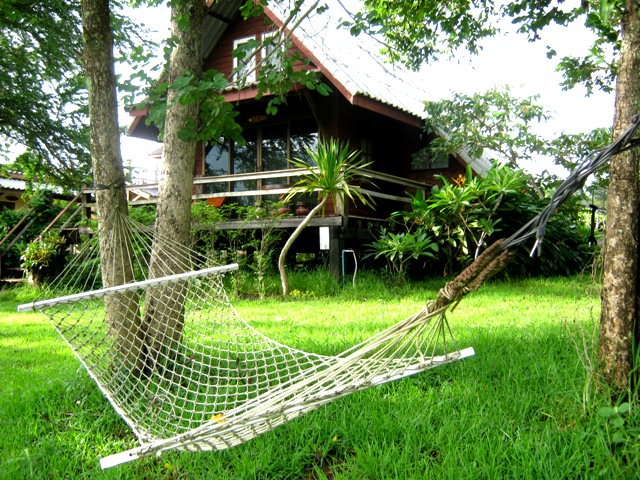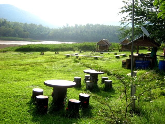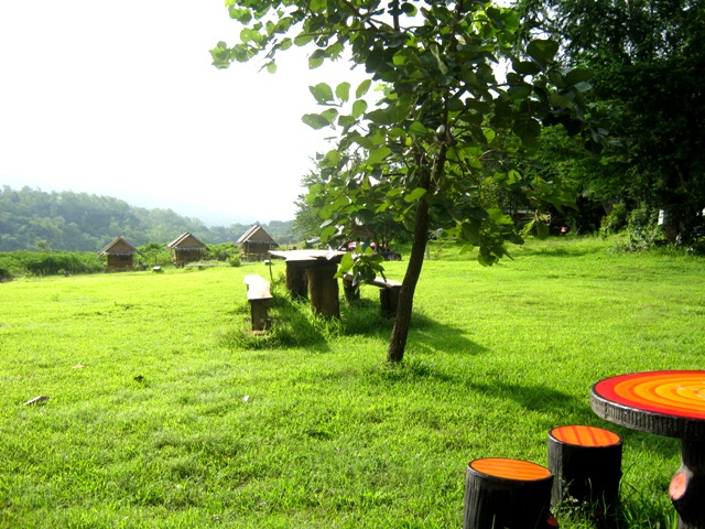 หญ้าเขียวขจี นุ่ม น่ากางเต๊นท์ แต่พี่หมูไม่ยอม เปิดบังกาโลว์ ให้นอนด้วยกลัวฝนกระหน่ำ