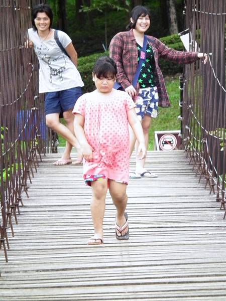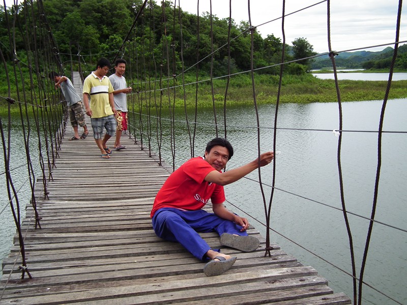 เด็กๆกลัวกับการเดินบนสะพานแขวน