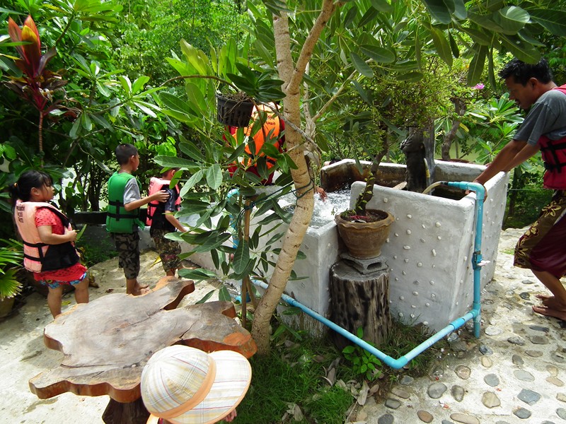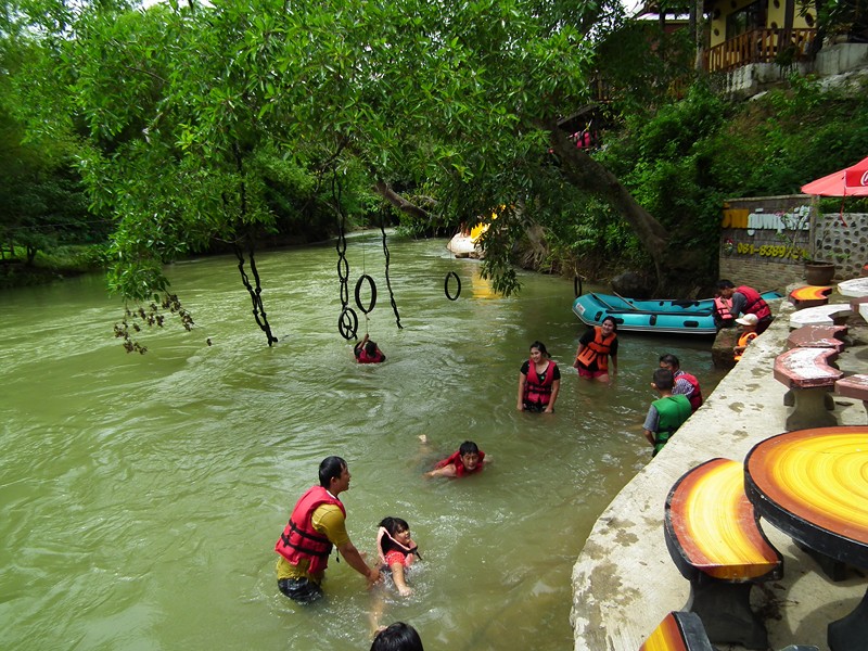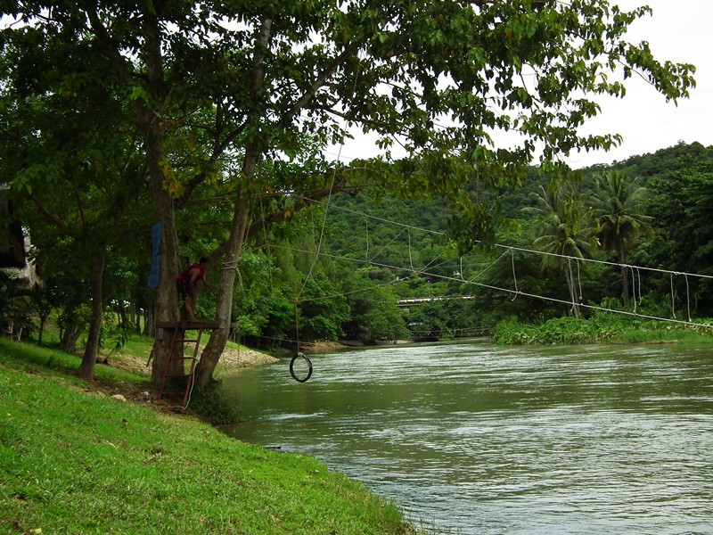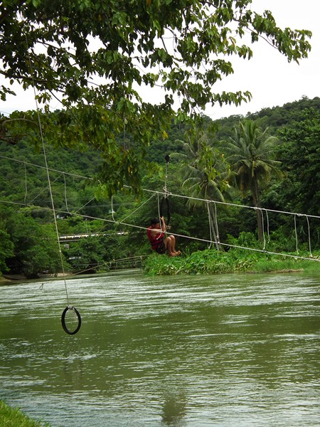 ลงจากสันเขื่อนก็มาโดดน้ำเตรียมพร้อมก่อนล่องแพ