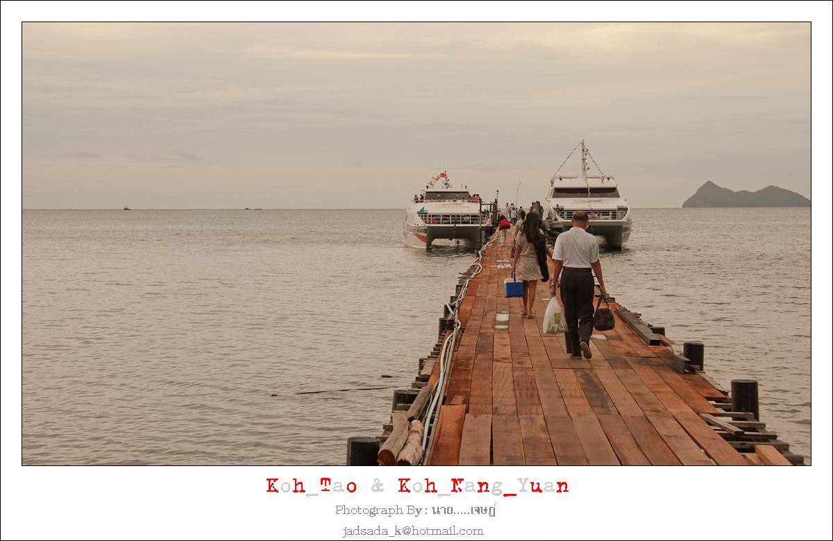 เรือออกจาท่าเรือ 7:00 น. ใช้เวลาเดินทางประมาณ 1ชั่วโมง 30 นาที จากท่าเรืออ่าวทุ่งมะขามถึงเกาะเต่า ระยะทางประมาณ 74 กม. บรรยากาศยามเช้า ครึ้มๆมีฝนปรอยๆ
