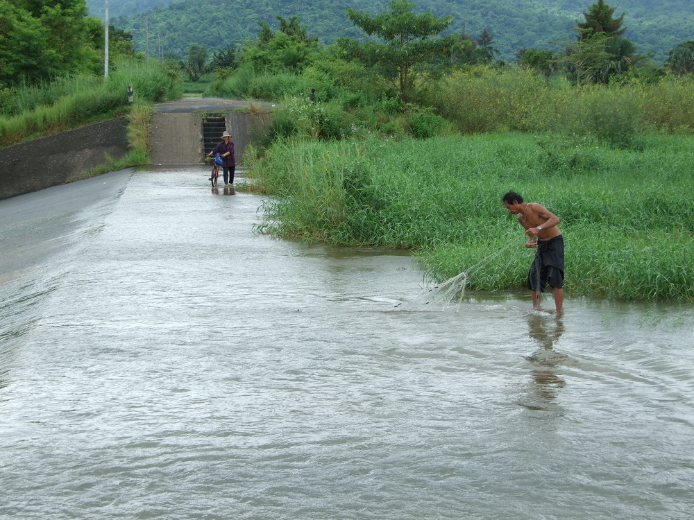 มีชาวบ้านหาปลาตามวิถีชีวิตชนบททั่วไป ...ดูแล้วก็มีความสุขแบบเรียบง่ายดี