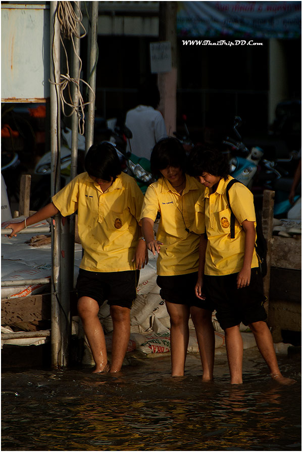 เด็กๆนักเรียนเขาคงมาพิสูจน์น้ำท่วมกัน