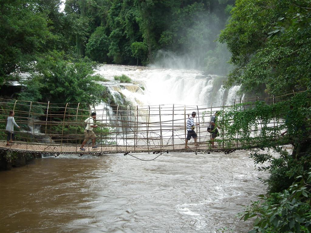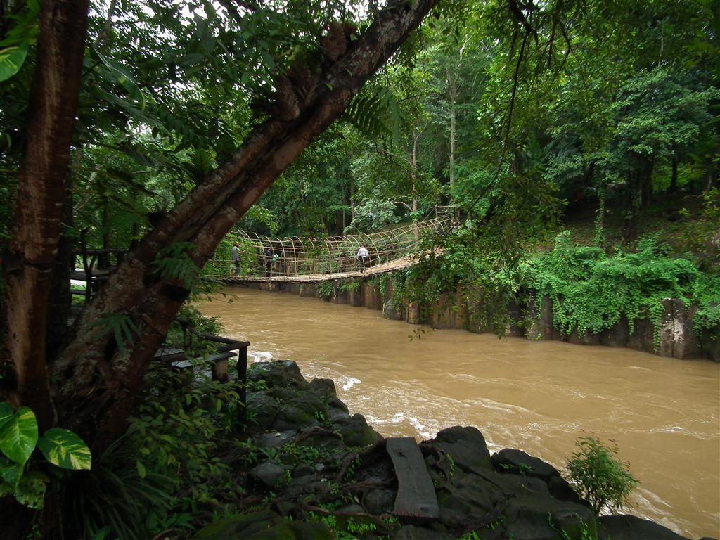 จากจุดจอดรถต้องเดินข้ามลำน้ำเชี่ยวโดยสะพานหวายทำมือที่แข็งแรงและได้บรรยากาศธรรมชาติดี....
