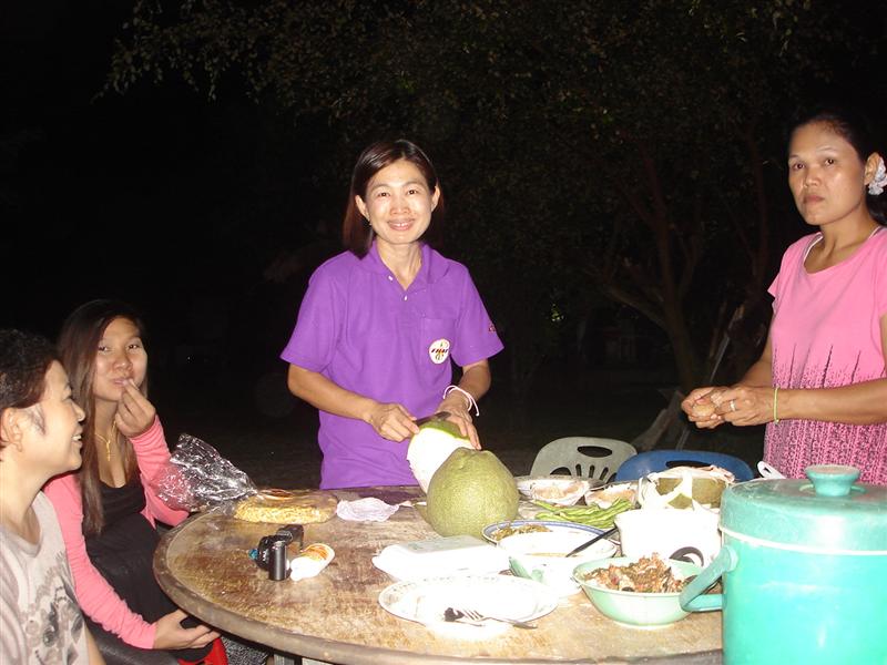 บางท่านมาถึงกันเย็นย่ำ ก็ลองท้องกันก่อนครับ สารพันอาหาร ที่บางท่านนำติดมาด้วย ก็เอาออกมาแจมกันบนโต๊ะ
