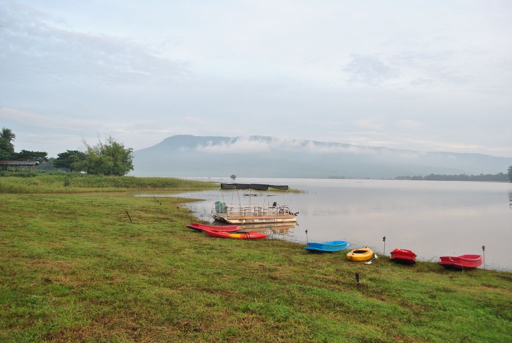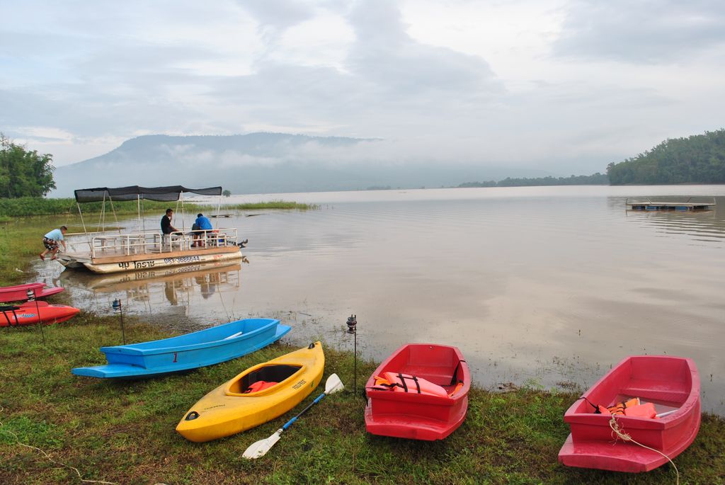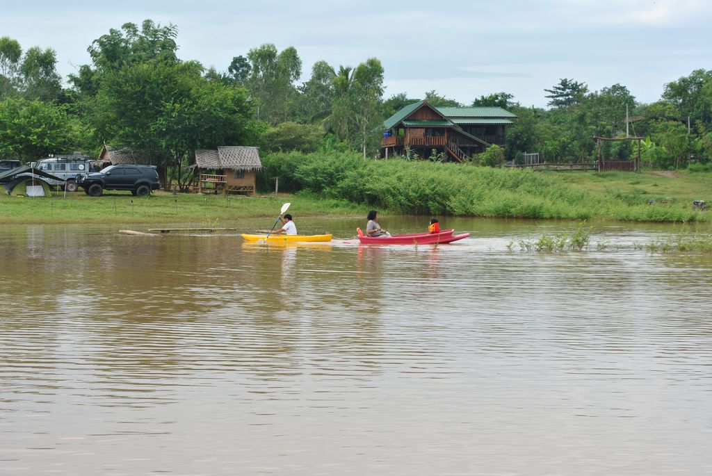 กิจกรรมยามเช้าของชาวแค็มป์ปิ้ง ภาพนี้น่ารักดี..ป้าตุพายเรือไปติดกออะไรไม่รู้ ด็อกเตอร์พายเรือไปลากกลับ