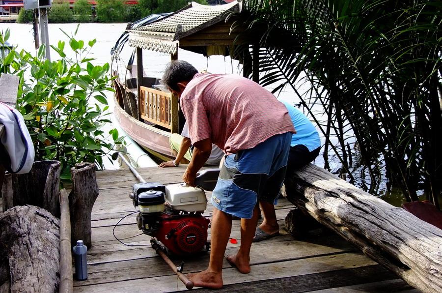มีเรือมาจอดใช้ใบพัดเรือช่วยผันน้ำลงทะเล