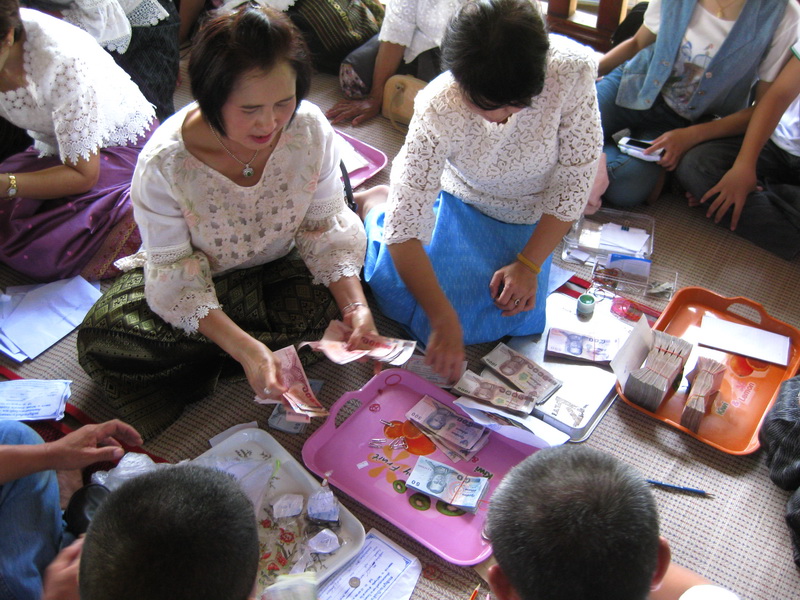 แล้วก็เริ่มพิธีทอกกฐินของวัดป่ากุดฉิม ประจำปี2554 กำลังนับยอดเงินกฐินอยู่ครับ