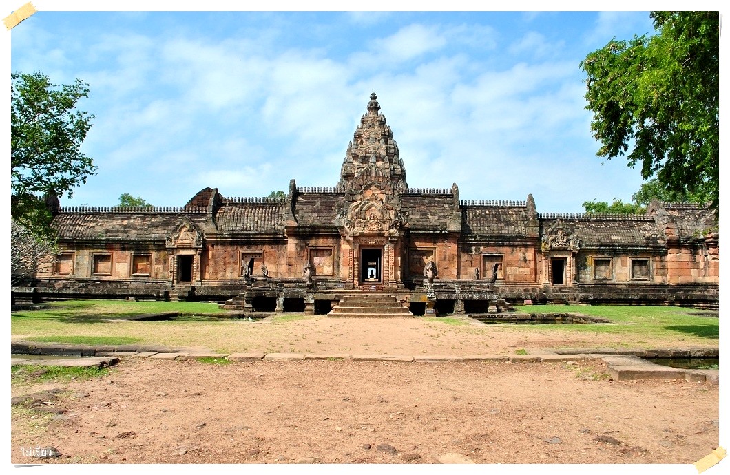 ก่อนถึงพิมาย แวะไหว้พระนอนหินทราย สร้างในสมัยทราวดี ที่วัดธรรมจักรเสมาราม เลยอำเภอสีคิ้วไปหน่อย แล้วเลี้ยวซ้ายเข้าอำเภอสูงเนิน มีป้ายบอกทางตลอดครับ