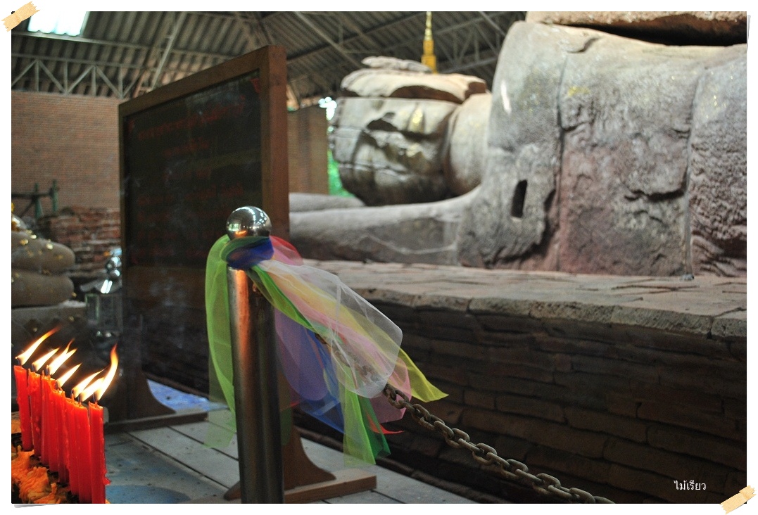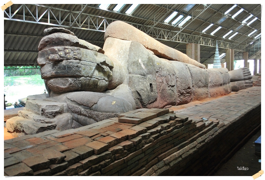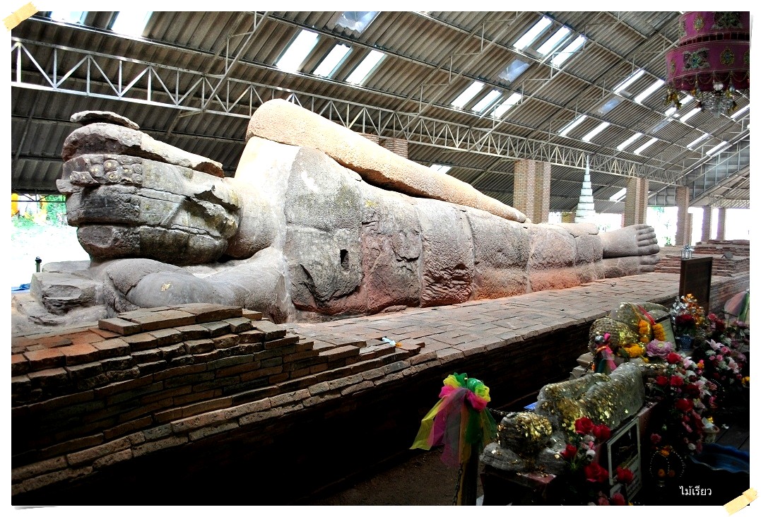พระนอนหินทรายองค์นี้..จากประวัติการสร้างมาตั้งแต่สมัยทราวดี เมื่อปี พ.ศ. 1200 โน้นนะ