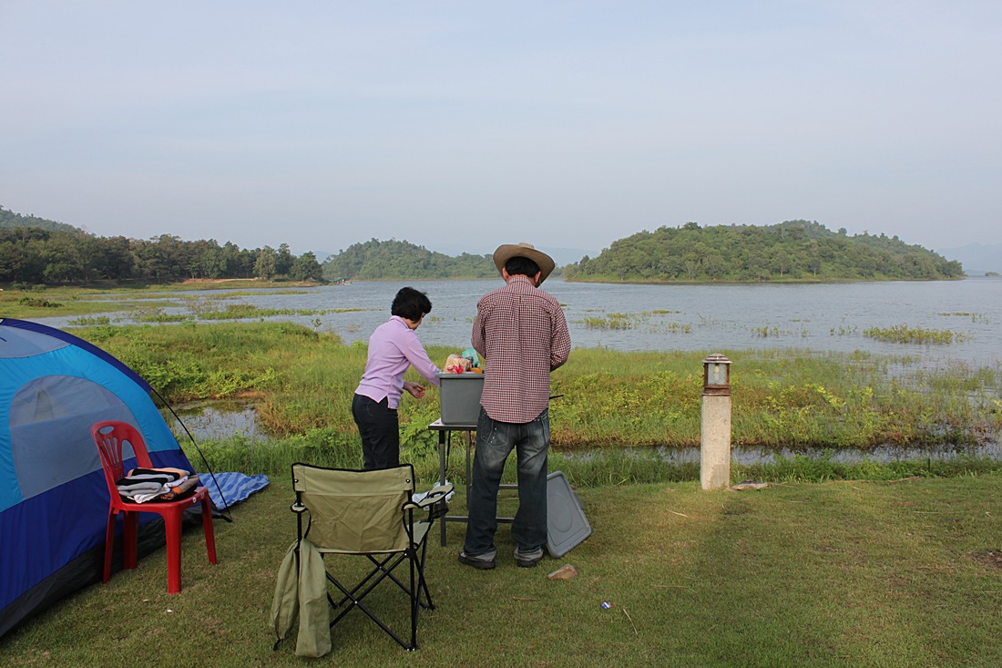 นั่งรอเวลาขึ้นพะเนินทุ่งกันที่ แค้มบ้านกร่างครับ