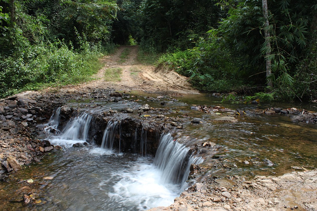 ทางขึ้นพะเนินทุ่งมีข้ามลำธาร ไต่ระดับความสูง ผิวทางขุขระ