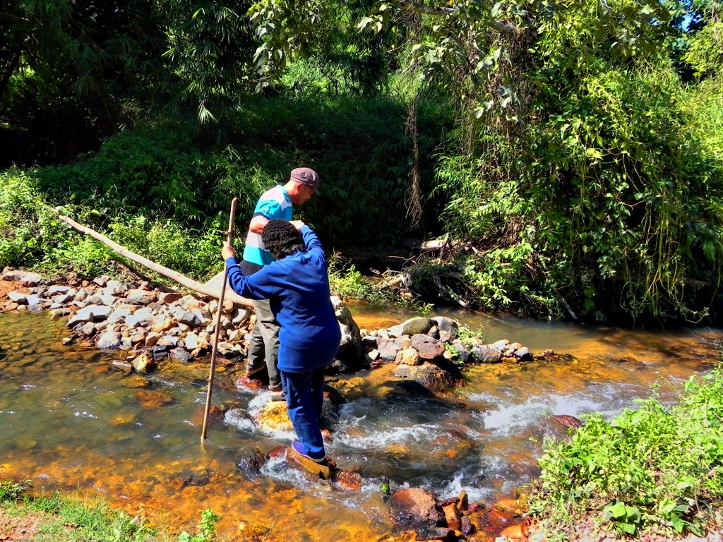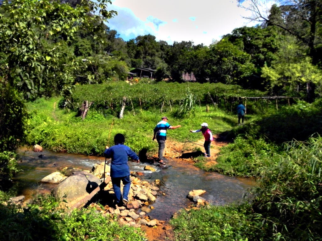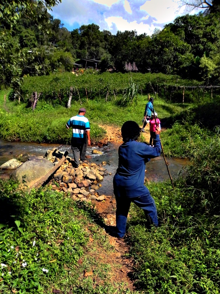 น้า...น้า...เราจะต้องข้ามลำธารเล็กๆ เพื่อที่ดงเมี่ยงกันง่ะน้า..เดี๋ยวก็รู้ว่าต้นเมี่ยงมันหน้าตา...เป็นไง.........งุงิงุงิ