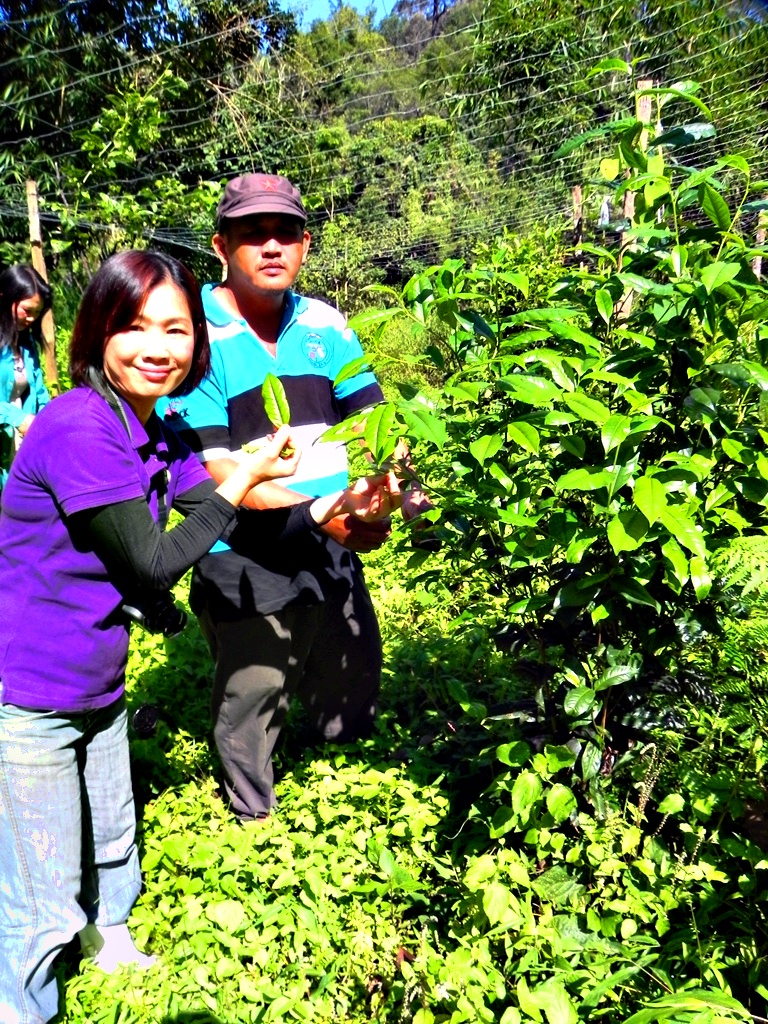 น้า...น้า...พี่ซอนกำลังสาธิต...วิธีเก็บใบเมี่ยงง่ะน้า...พี่ซอนชำนาญมากง่ะน้า...ดูแทบไม่ทันเลยง่ะ......งุงิงุงิ