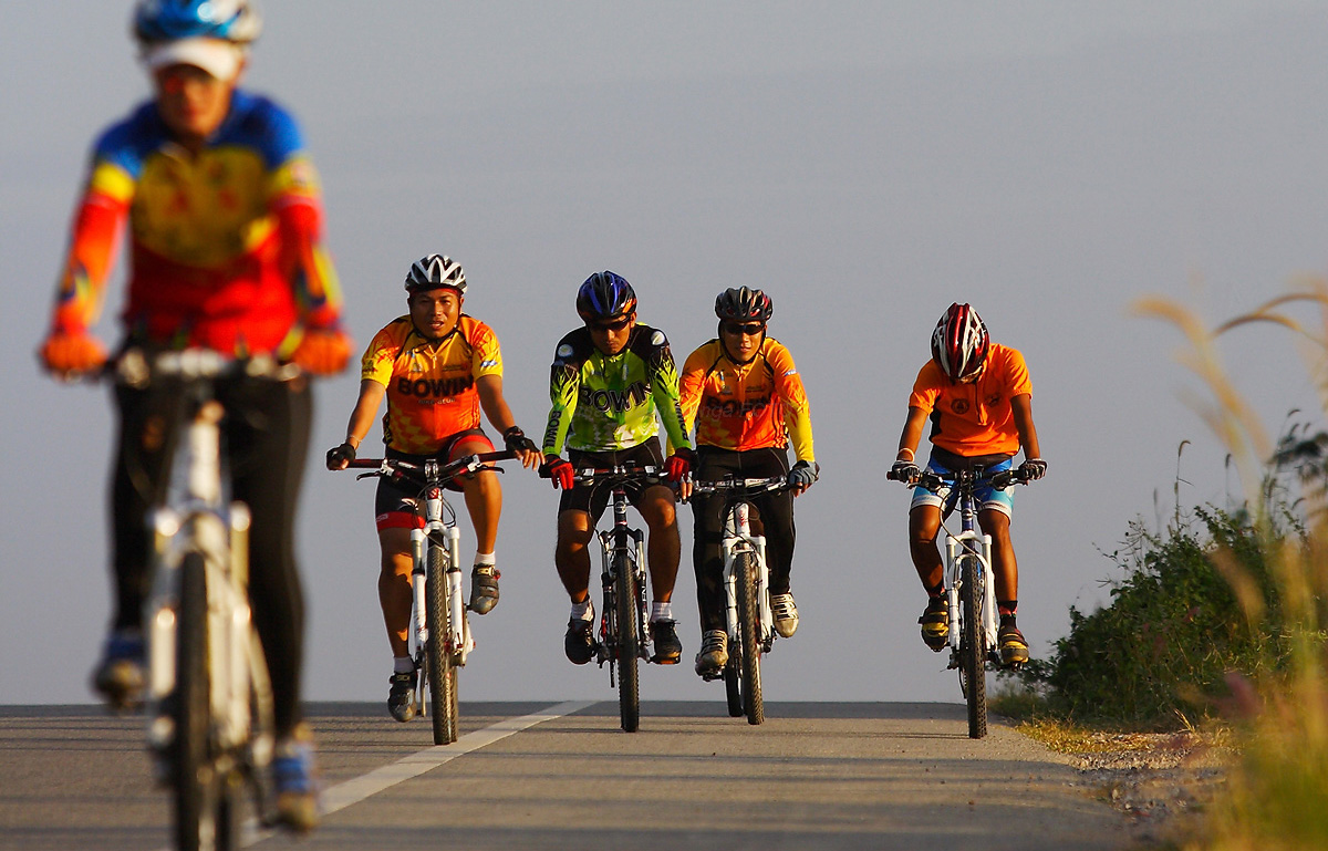 สายหน่อยนั่งเล่นริมทาง เจอพี่ๆๆกลุ่มนี้ ปั่นมา ก็ พอดี แสงลง
