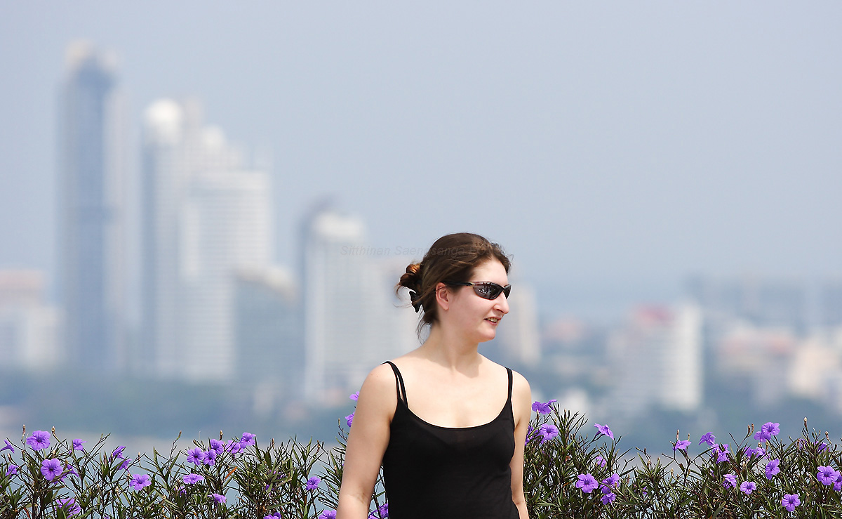 ขับรถไปไหว้กรมหลวงที่พัทยา เอากล้องไปด้วย แหม เห็นตึกด้านหลังสวยดี
