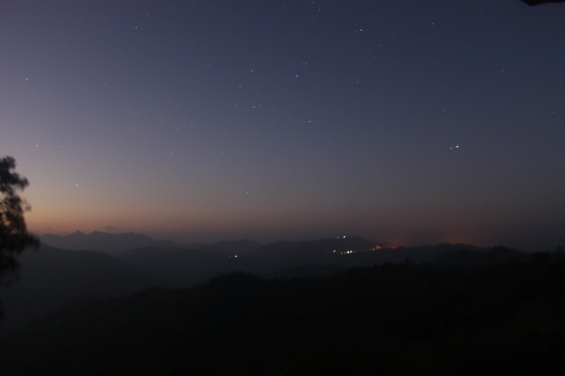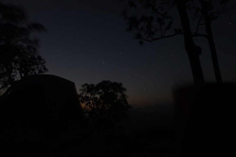 ช่วงเวลา ตี 5 ครึ่ง บริเวณจุดกางเต้นครับ แสงไฟสีส้มข้างล่าง คือ หมู่บ้าน อีต่องครับ