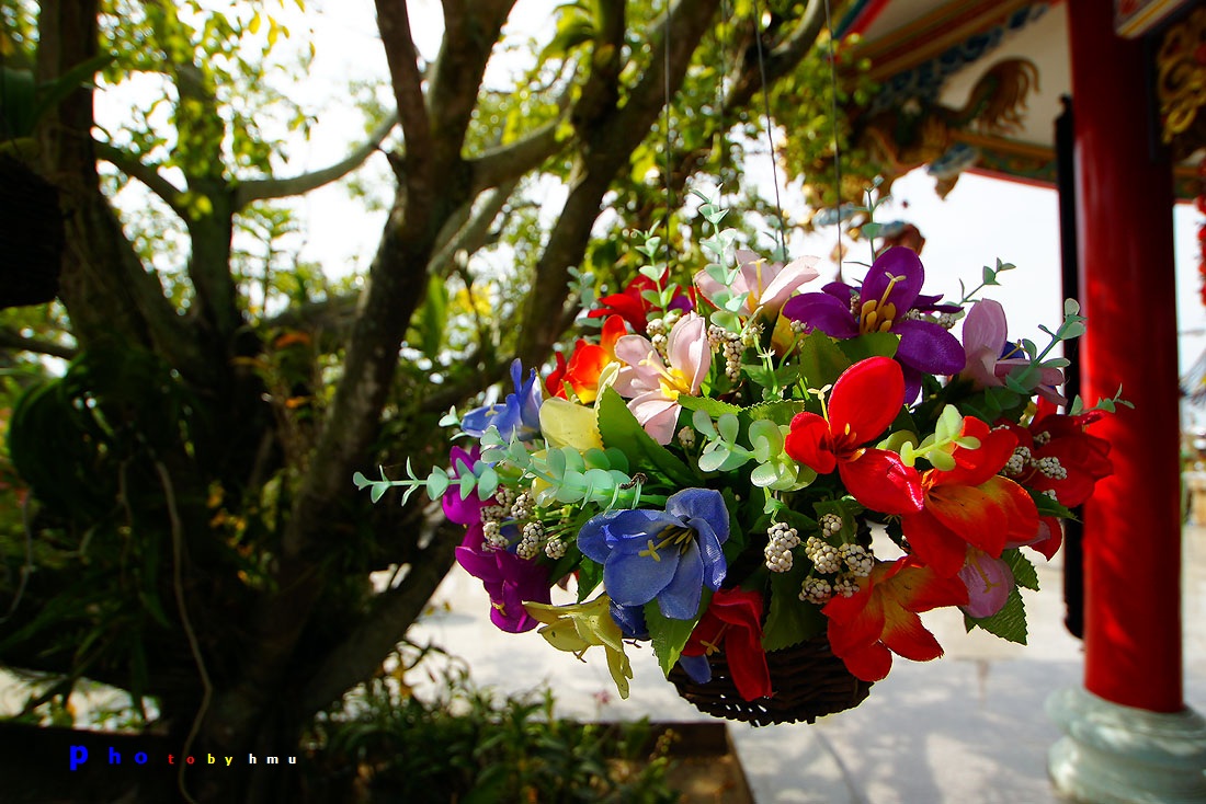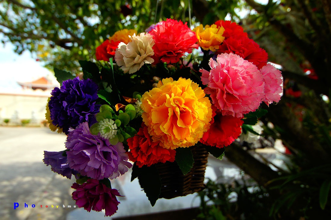 สถานที่สวยงาม ดอกไม้ทั้งจริงทั้งปลอม ห้อยเต็มไปหมด.