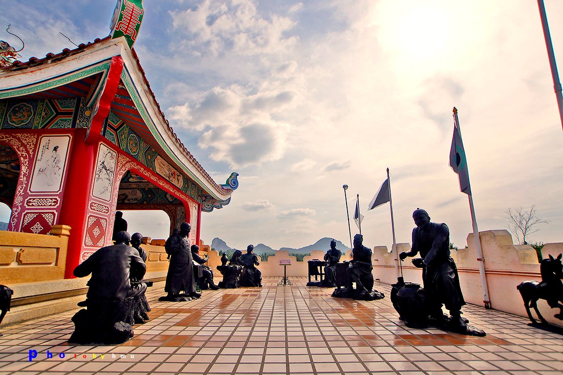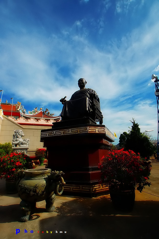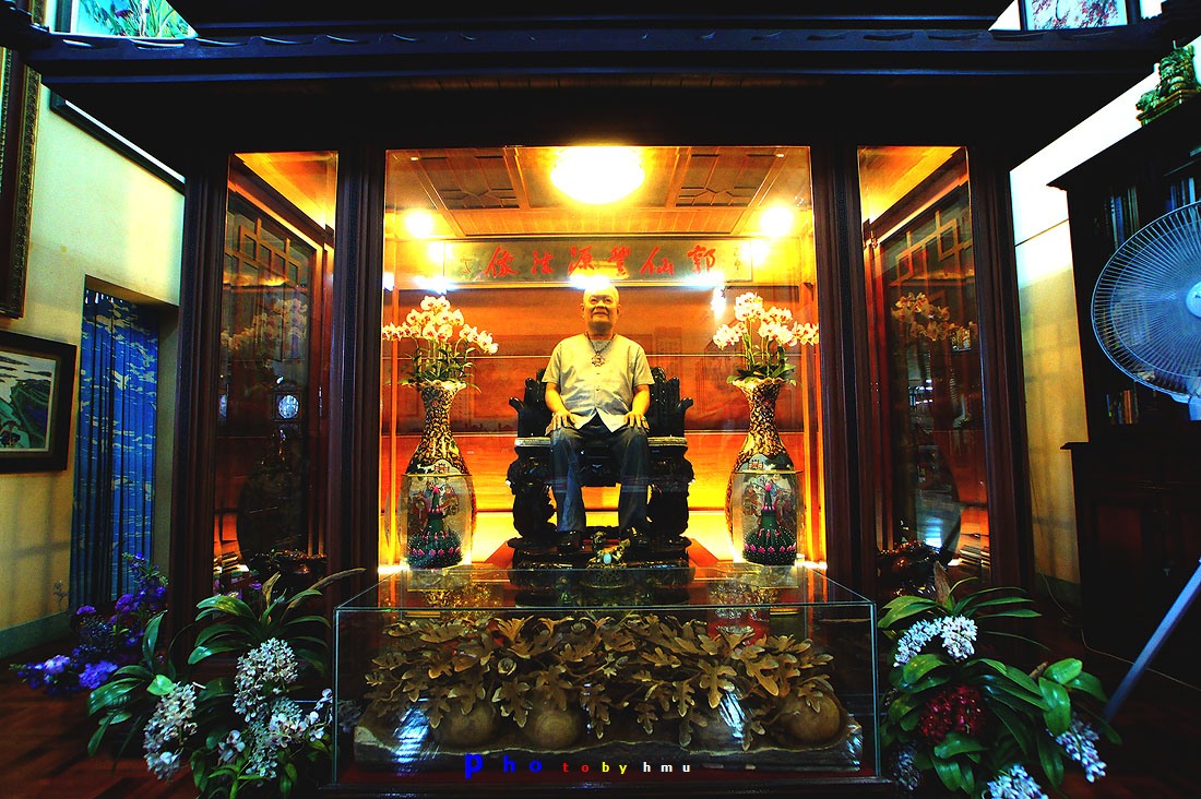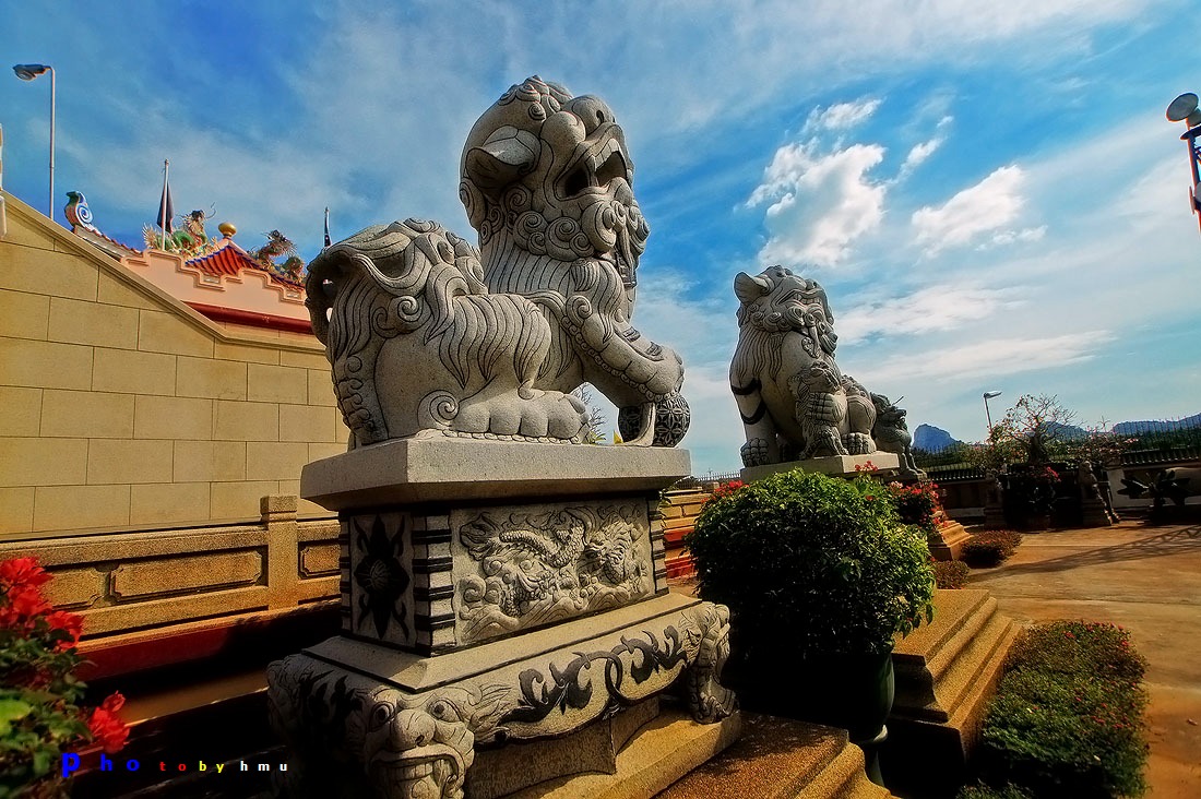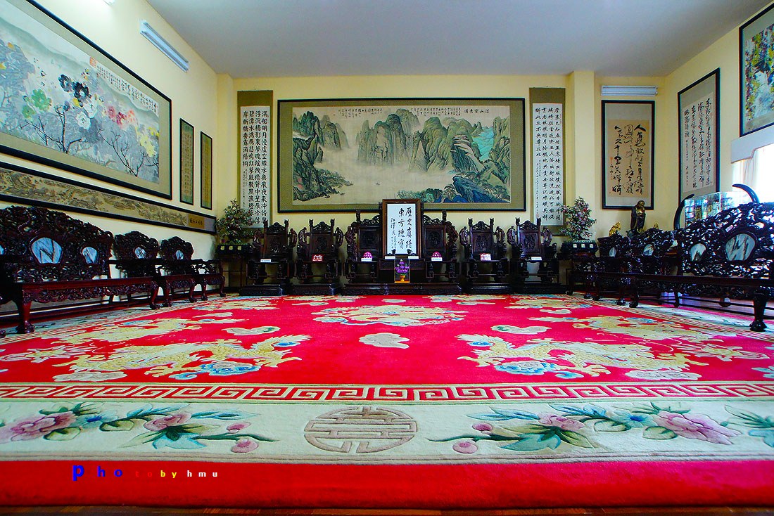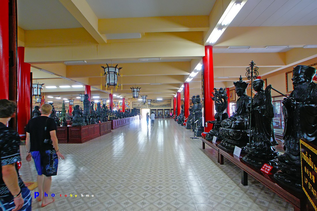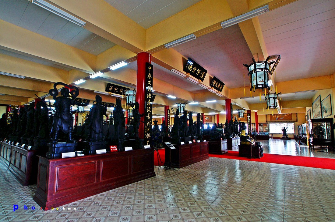 1. รูปสลักหินแกรนิต อยู่ที่ลานชั้นล่างด้านหน้าอาคารใหญ่ มีรูปสลักหินขนาดใหญ่จากประเทศจีนกว่า 60 รายการ สลักจากหินแกรนิตที่มีสีแดง เขียว ทอง และเทา โดยช่างจากมณฑลกวางตุ้ง ประกอบด้วยหินแกะสลักรูปสิงโต กิเลน สัตว์ต่างๆ ในเทพนิยายจีน หินแกะรูป 12 ราศี ที่สำคัญ ได้แก่ สิงโตปักกิ่งหินคู่ที่ใหญ่ที่สุดในโลก สูง 3.5 ม. น้ำหนักตัวละ 22 ตัน และรูปหล่อแปดเซียนข้ามทะเลหรือโป๊ยเซียน ซึ่งเป็นเทพเจ้าที่ชาวจีนเคารพ