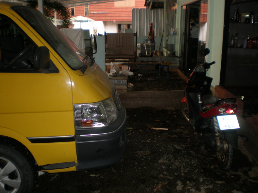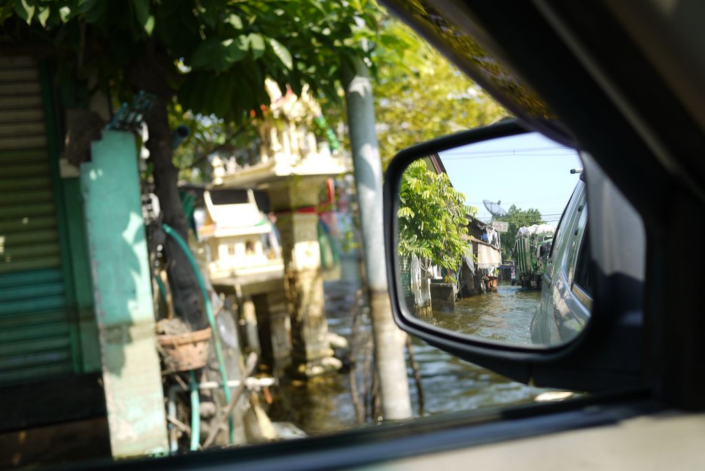 หน้าบ้านลายจอดรถก่อนที่น้ำจะท่วม