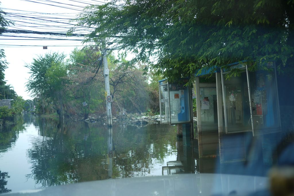 ปากซอยเข้าคอนโด นี่ขนาดน้ำลดมากแล้ว น้ำลึกสุดเท่าคางพอดี