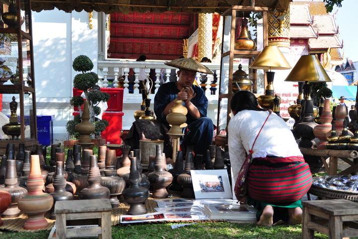 บริเวณวัดก็มีการนำสินค้าหัตถกรรมต่างๆมาสาธิตและจำหน่ายได้ความรู้มากมายครับ