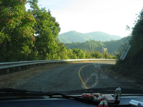 ...ทางราดยางดี ช่วงโค้งให้ระวัง ไม่สามารถมองเห็นรถที่สวนมาได้ เขาบัง