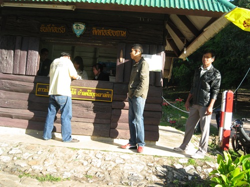 หลังจากเพลิดเพลินกับวิวสวยๆลมแรงๆ ที่เนินช้างศึก แล้ว ก้อขับรถลงมาอีกหน่อย ติดต่อกางเตนท์ที่ทำการอุทยาน ฯ