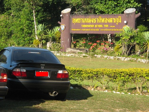ออกเดินทางจาก กทม.กลางดึก ไปถึงตลาดทองผาภูมิ ตีห้าครึ่ง นั่นคือสิ่งที่ตั้งใจไว้ แวะพักรถ คนชอปปิ้งตลาดสดยามเช้าตรู่ หกโมงล้อหมุนต่อ เพื่อไปให้ถึงอุทยานเช้าพอดี ใช้เส้นทาง 3272 ระยะทางประมาณ 60 กม. กับ 399 โค้ง ลัดเลาะตามไล่เขาขึ้นไป ทางราดยางตลอด แคบหน่อย แต่ขับสนุก