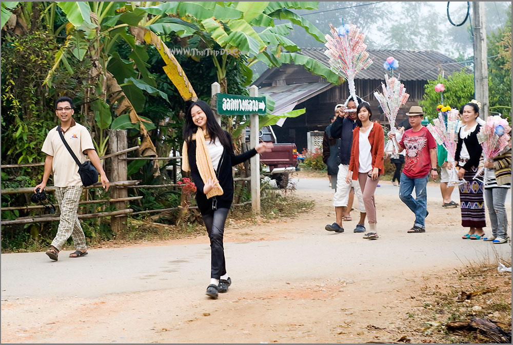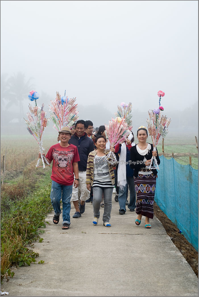 ขบวนแห่ผ้าป่าออกจากบ้านป้าแอ๋วมุ่งสู่วัดกันเลย