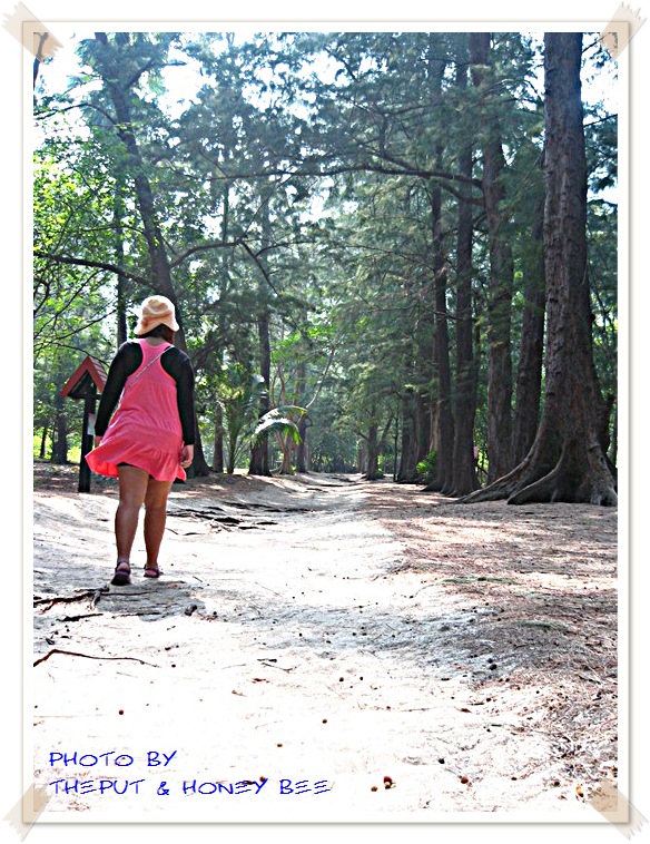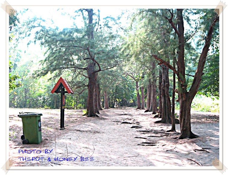 สองข้างทางเป็นทิวสน ให้ร่มเงาได้อย่างดี ลมเย็น ๆ ทรายนิ่ม ๆ ถ้าล้มตัวหลงนอน หลับแน่........