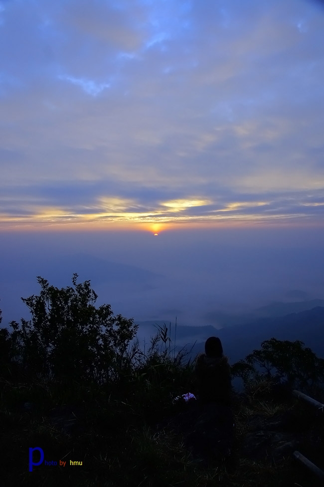 มองกลับไปจุดกางเต้นท์ข้างล่าง ยังไม่สวางดี...