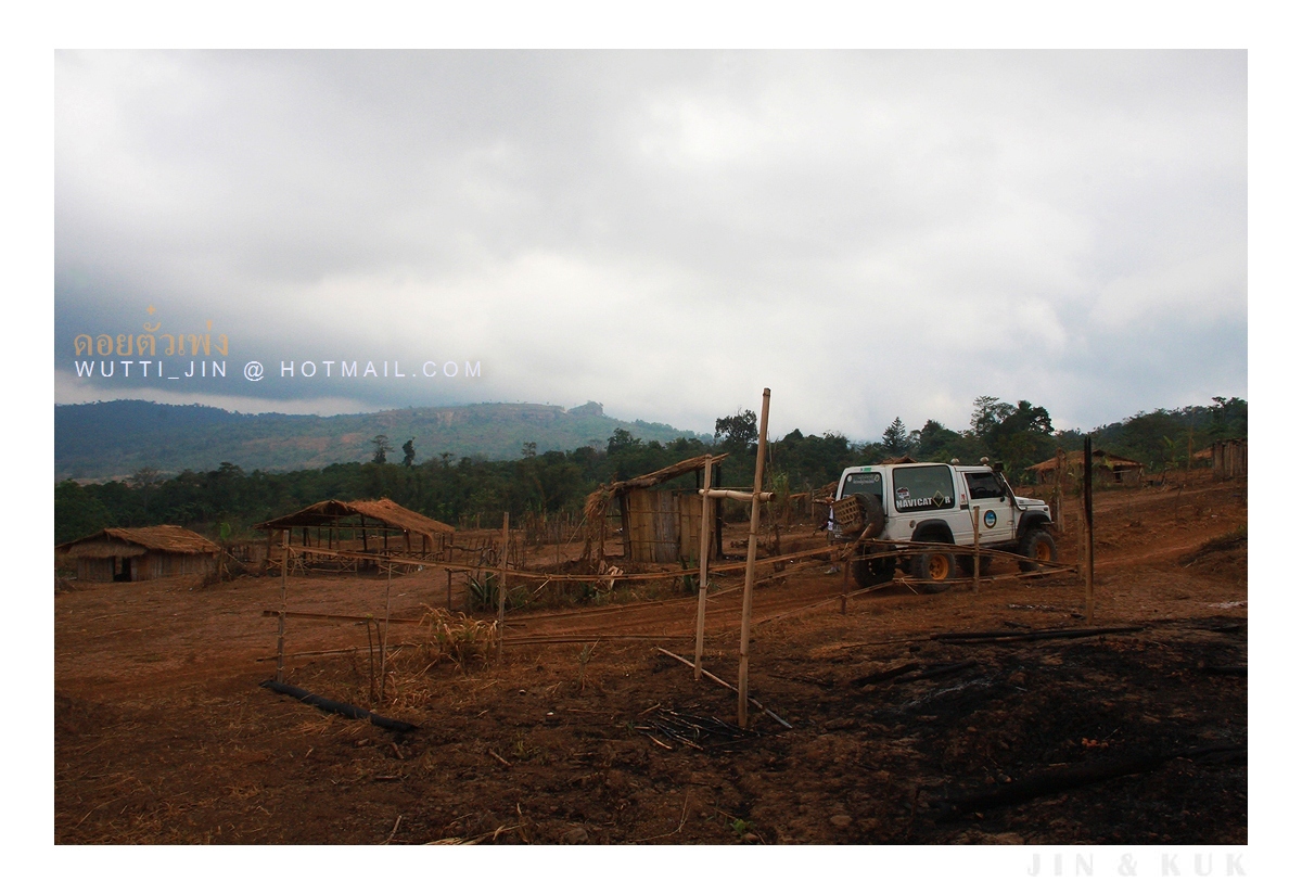 ทางชันนิดนึง แต่ไม่นานเราก็จะมาถึงตรงนี้ครับ เป็นอันว่าสิ้นสุด ถนนคอนกรีต ที่นี้ก็ทางฝุ่นครับ ไปตามทางหลักเรื่อยๆ ห้ามเลี้ยว มองไปทางซ้ายก็จะเห็นยอดไกลๆ