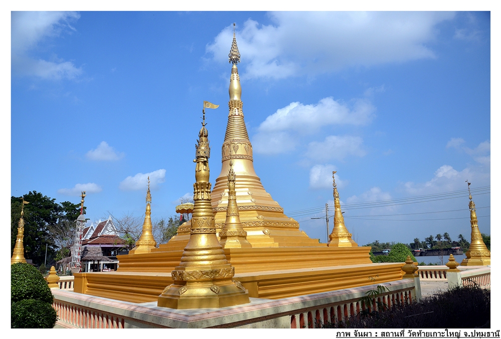 ..... วัดท้ายเกาะใหญ่ มีเจดีย์ทรงรามัญแบบชะเวดากอง ที่มีขนาดใหญ่ที่สุดของจังหวัดปทุมธานี ....