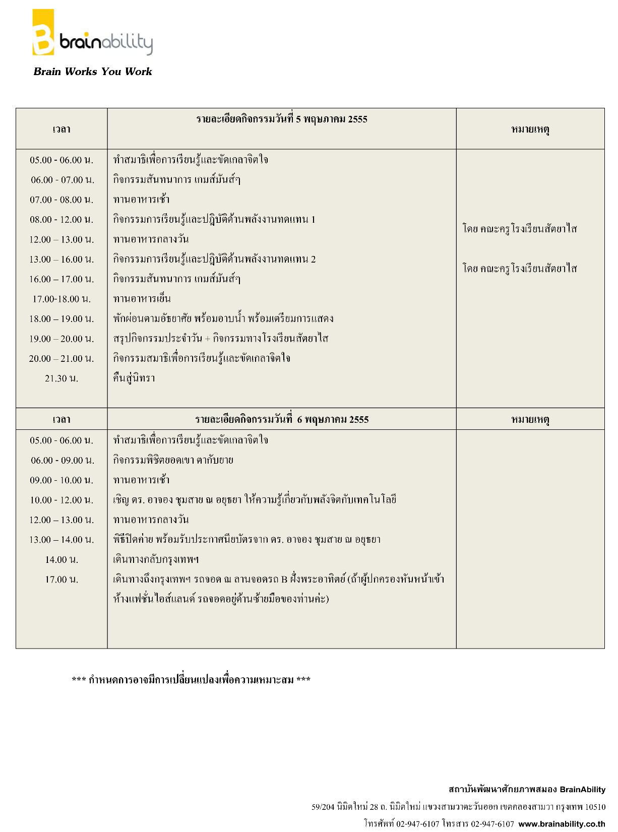 โทรศัพท์ 02-947-6107 โทรสาร 02-947-6107 www.brainability.co.th